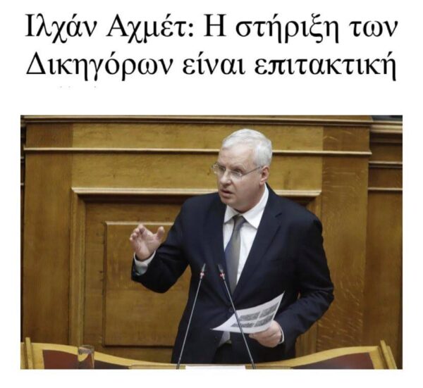 Ιλχάν Αχμέτ: Η στήριξη των Δικηγόρων είναι επιτακτική