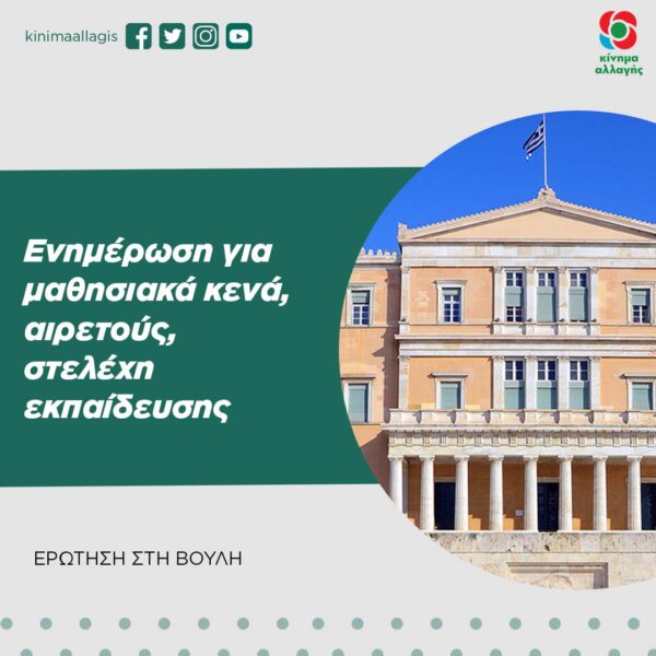 Προς την Υπουργό Παιδείας και Θρησκευμάτων κ. Νίκη Κεραμέως