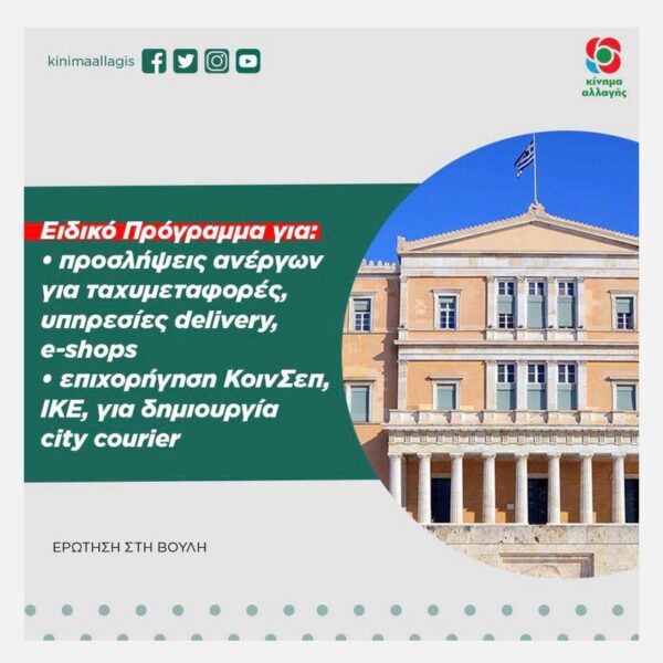 Θέμα: Ειδικό Πρόγραμμα για α) προσλήψεις ανέργων για ταχυμεταφορές, υπηρεσίες delivery, e-shops και β) επιχορήγηση ΚοινΣεπ, ΙΚΕ κλπ για δημιουργία city courier»