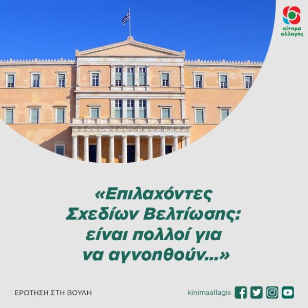 ΕΡΩΤΗΣΗ 3550: «Επιλαχόντες Σχεδίων Βελτίωσης: είναι πολλοί για να αγνοηθούν…»