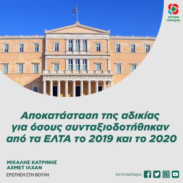 Ιλχάν Αχμέτ – Μιχάλης Κατρίνης: «Αποκατάσταση της αδικίας για όσους συνταξιοδοτήθηκαν από τα ΕΛΤΑ το 2019 και το 2020»