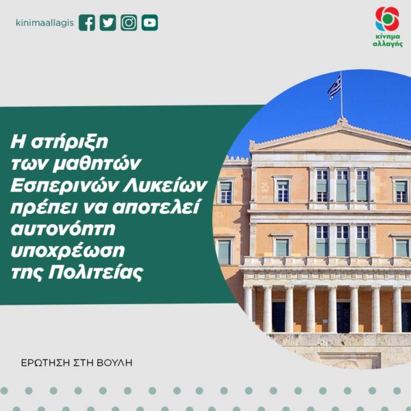 ΕΡΩΤΗΣΗ 5008: Η Στήριξη των μαθητών Εσπερινών Λυκείων πρέπει να αποτελεί αυτονόητη υποχρέωση της Πολιτείας