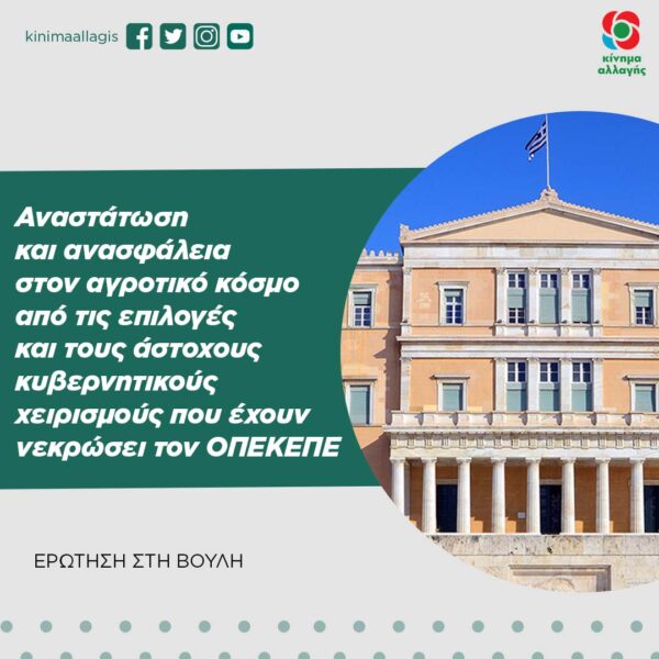 Θέμα: «Αναστάτωση και ανασφάλεια στον αγροτικό κόσμο από τις επιλογές και τους άστοχους κυβερνητικούς χειρισμούς που έχουν νεκρώσει τον ΟΠΕΚΕΠΕ».