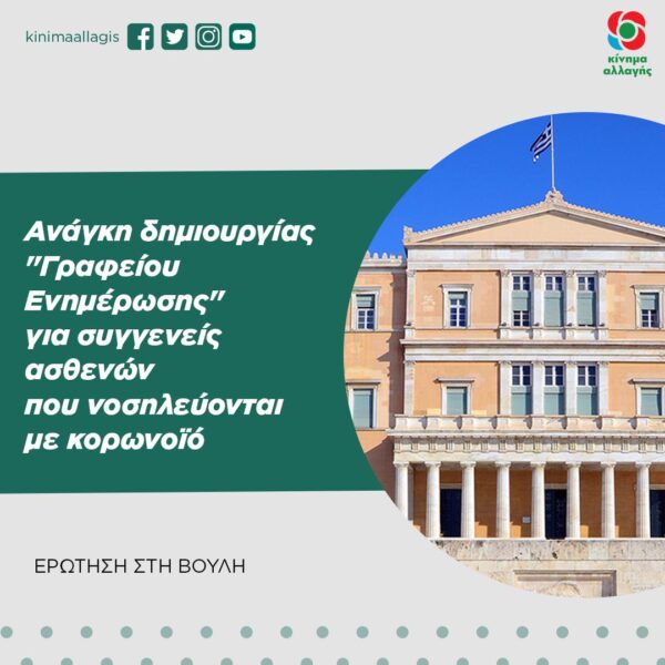 Θέμα: «Ανάγκη δημιουργίας ‘’Γραφείου Ενημέρωσης’’ για συγγενείς ασθενών που νοσηλεύονται με κορωνοϊό»