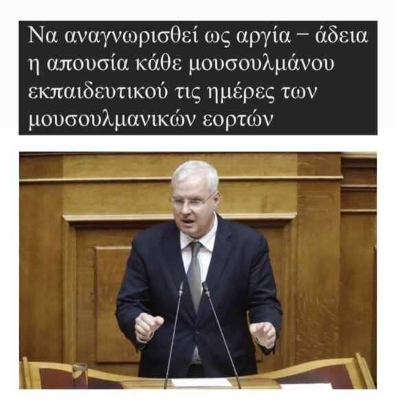 Ιλχάν Αχμέτ: Να αναγνωρισθεί ως αργία – άδεια η απουσία κάθε μουσουλμάνου εκπαιδευτικού τις ημέρες των μουσουλμανικών εορτών