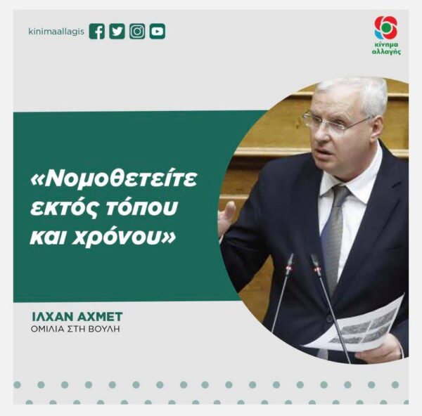 Ιλχάν Αχμέτ: «Νομοθετείτε εκτός τόπου και χρόνου»