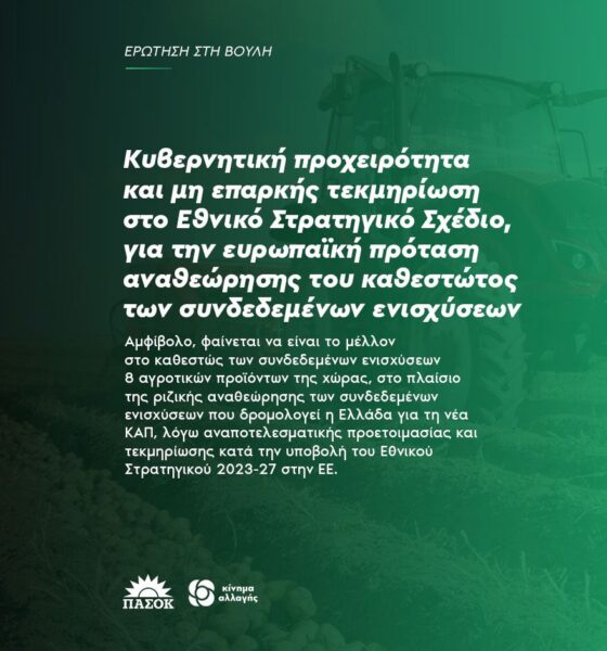 Κυβερνητική προχειρότητα και μη επαρκής τεκμηρίωση στο Εθνικό Στρατηγικό Σχέδιο, για την ευρωπαϊκή πρόταση αναθεώρησης του καθεστώτος των συνδεδεμένων ενισχύσεων