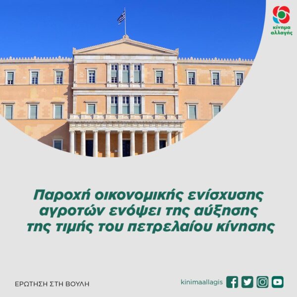 Θέμα: «Παροχή οικονομικής ενίσχυσης αγροτών ενόψει της αύξησης της τιμής του πετρελαίου κίνησης»