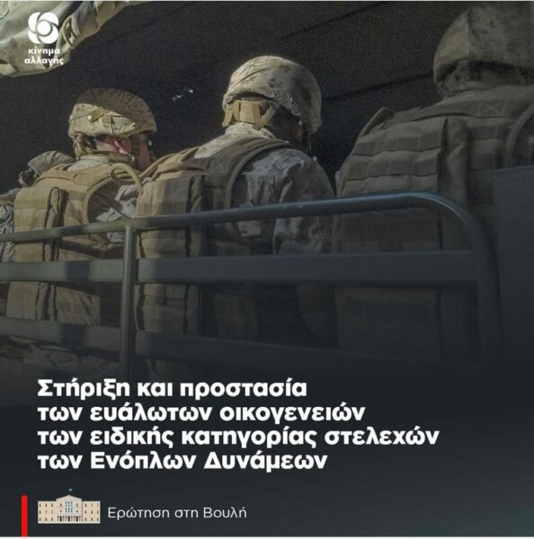 Στήριξη και προστασία των ευάλωτων οικογενειών των ειδικής κατηγορίας στελεχών των Ενόπλων Δυνάμεων