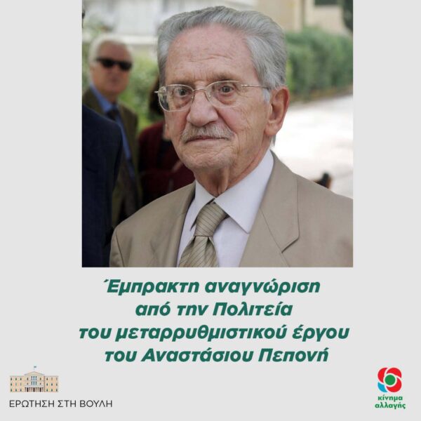 Θέμα: «Έμπρακτη αναγνώριση από την Πολιτεία του μεταρρυθμιστικού έργου του Αναστάσιου Πεπονή»