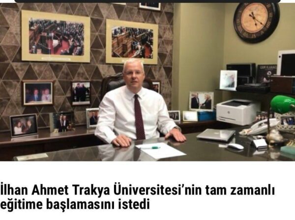 İlhan AHMET, Trakya Üniversitesi’nin covid – 19’a karşı güçlendirilerek tam zamanlı eğitime başlamasını istedi.