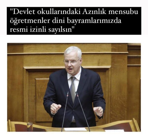 Milletvekili ayrıca, Azınlık mensubu öğretmenlerin söz konusu düzenleme hayata geçirildiği takdirde düzenli izin ödeneği kapsamına alınmasını ve bugüne kadar uygulandığı şekliyle kesintilerin kaldırılmasını talep etti. Miletvekili bakana, devlet okullarındaki Azınlık mensubu yedek liste öğretmenlerinin izin haklarının, kadrolu öğretmenlerin haklarıyla eşitleme çağrısında bulundu.