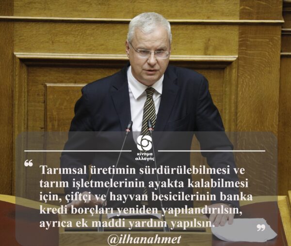 Soru önergesinde, 35.000’den fazla çiftçi ile kooperatiflerin, 1,5 milyar Euro (faiz oranıyla birlikte 4 milyar Euro’ya ulaşan) tahsili gecikmiş ve özellikle de kapatılan Ziraat Bankası (Agrotiki) tarafından verilmiş olan kredi borçları nedeniyle, adeta rehin tutulduğu belirtildi.
